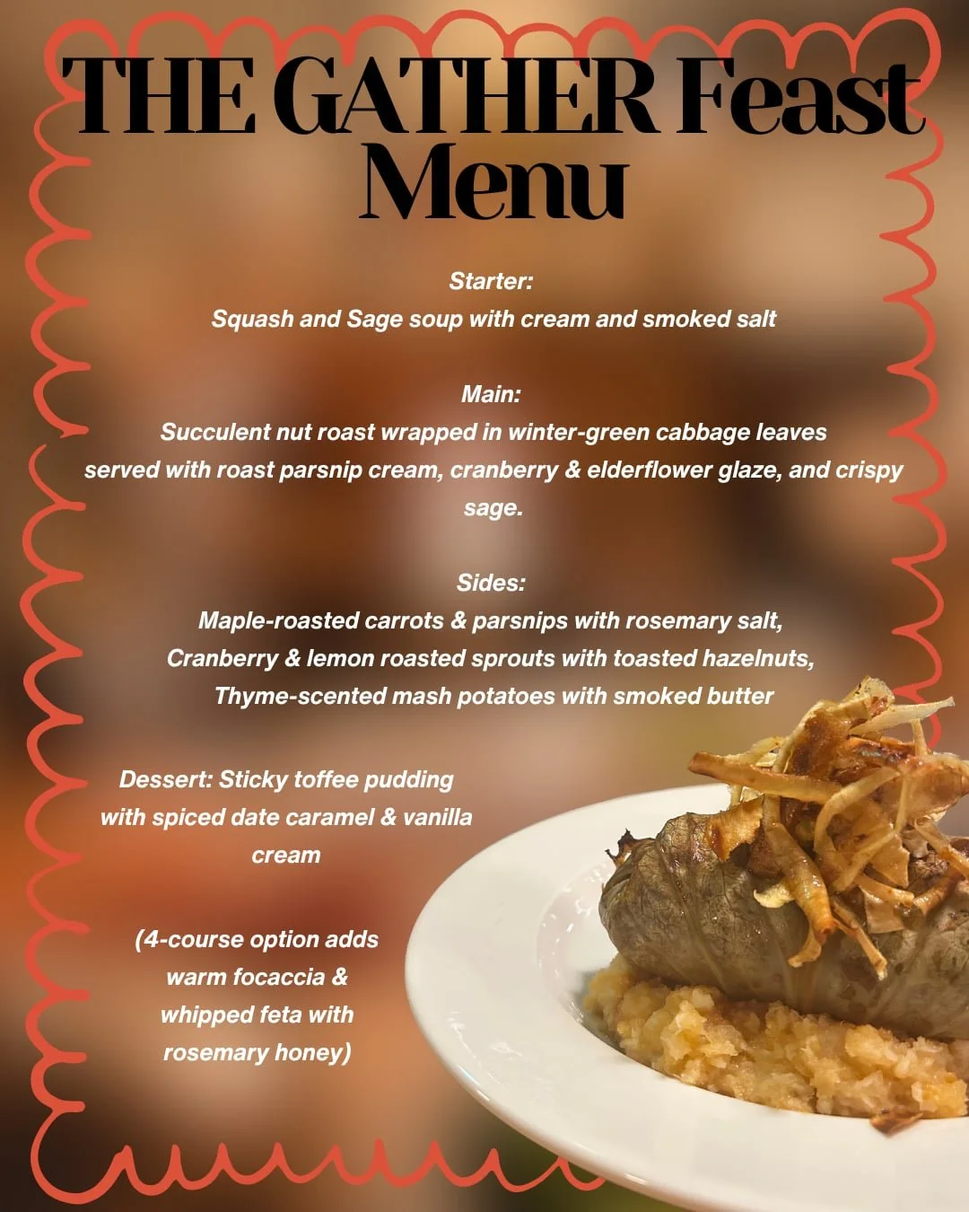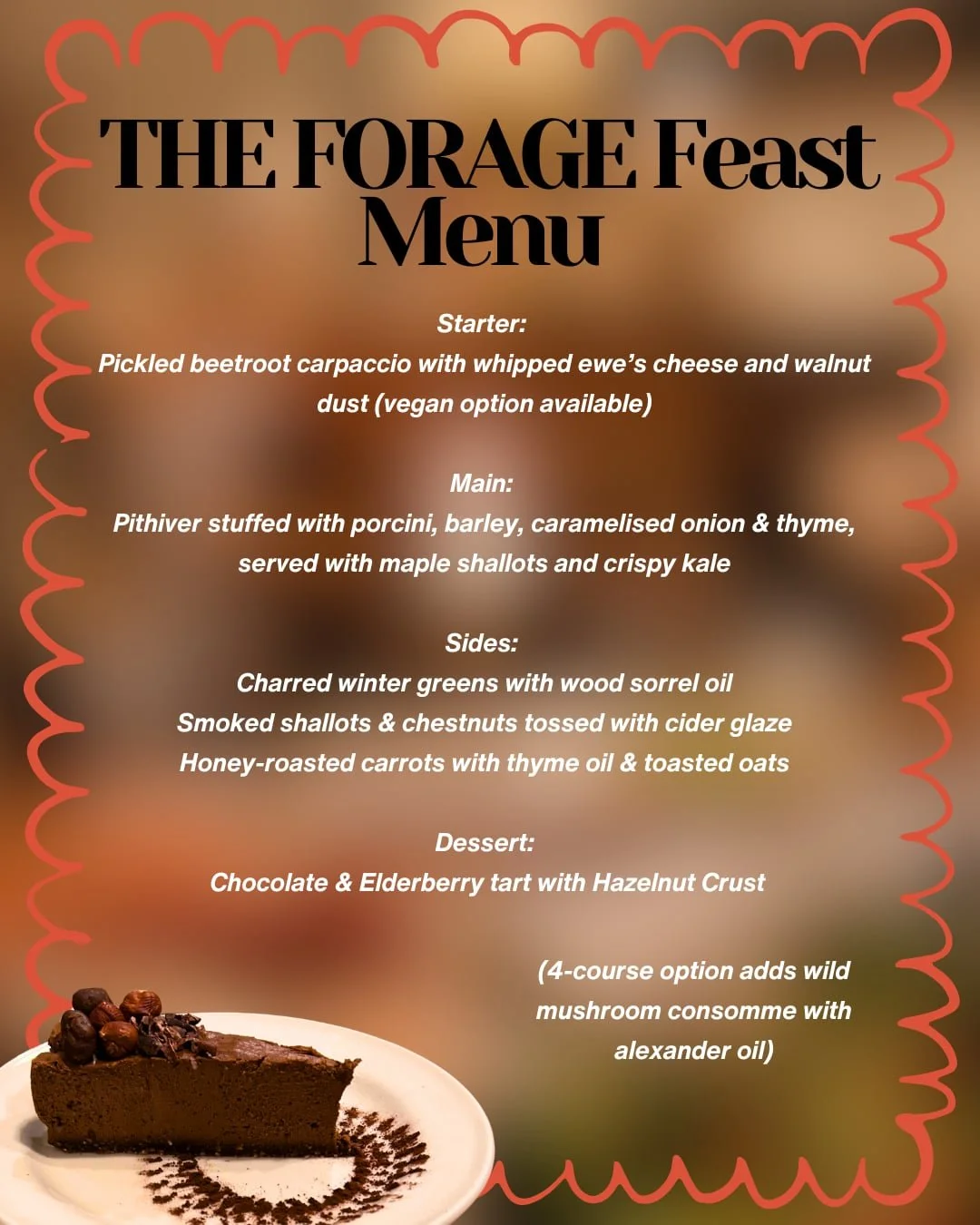 £60 pp (3 courses) | £65 pp (4 courses)