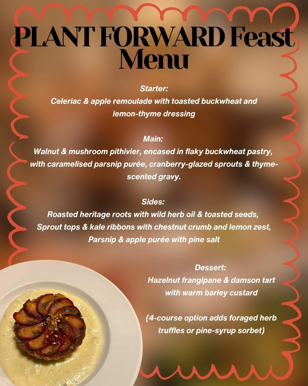 (All menus use regenerative, local & foraged produce. Allergens & dietaries can be adapted with prior notice.)